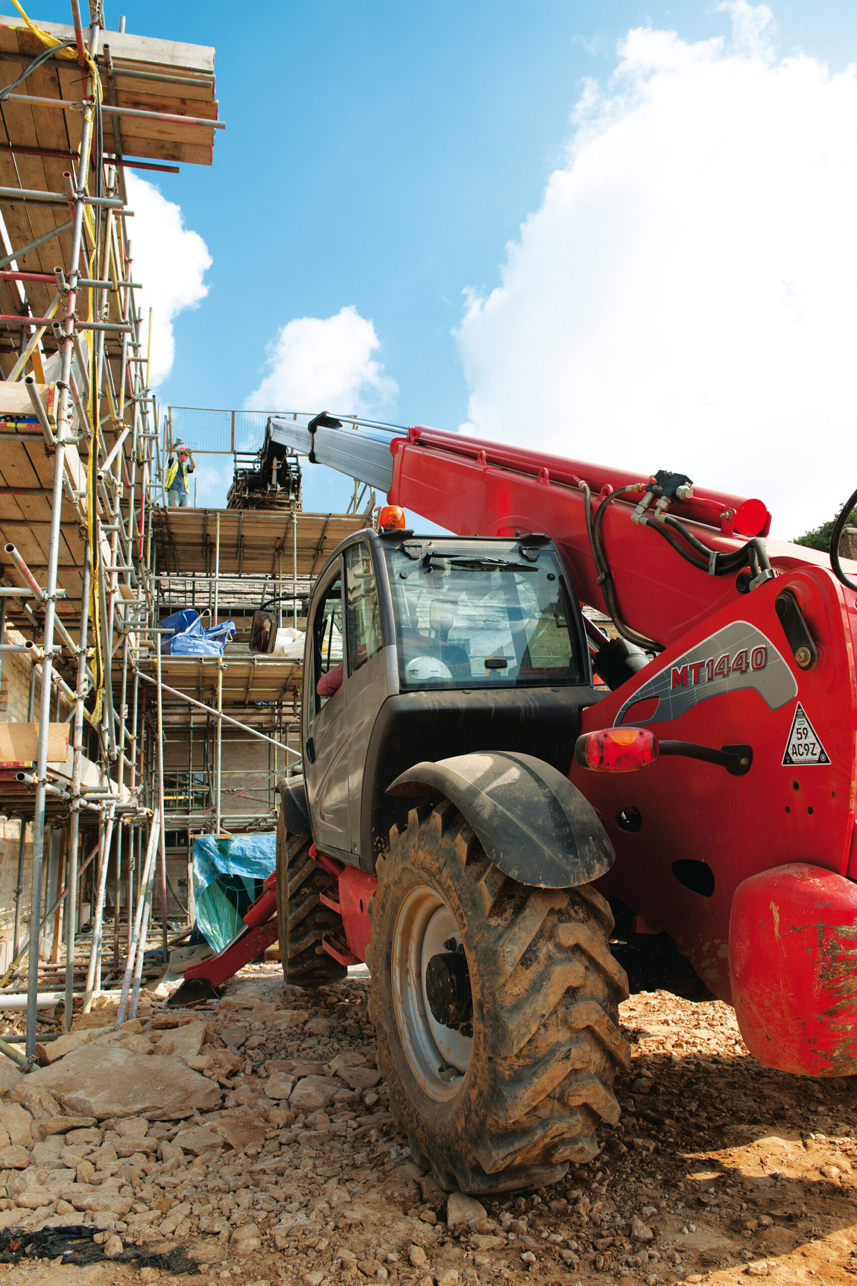 Le chariot télescopique MT-X 1440 est conçu pour les chantiers impliquants de grandes hauteurs. Avec une capacité de 4 t. et une hauteur de levage de 14 m., vous placez vos charges en sécurité grâce aux stabilisateurs larges qui lui donnent une excellente stabilité latérale et frontale.Il est très agile sur différents types de sols grâce aux 4 roues motrices et directrices et à la haute garde au sol. Grâce à des points d'élingage accessibles, vous pouvez aisément déplacer le MT-X 1440 d'un chantier à un autre. La qualité des composants et la porte basse tôlée vous assurent une longue durabilité. La large ouverture du capot moteur facilite son entretien.